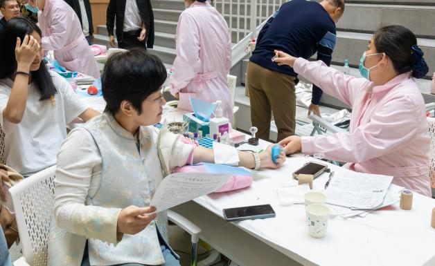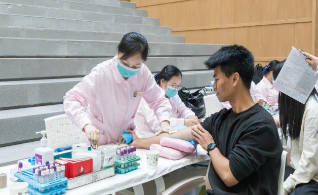 不少师生已是多次献血,面对采血针多了一份从容与坦然。血液缓缓流入储血袋,汇聚的不仅是一份份可再生的血液,更是师生共筑的生命保障网,是青春与责任交融的温暖印记。