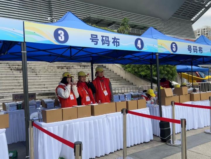 赛前两日,210名志愿者早早进入“实战状态”,用热情与笑容迎接每一位选手。清晨七点半,多个发放窗口已全部就位,各类物资整齐陈列,仿佛一片温暖的“补给港湾”,静候选手到来。