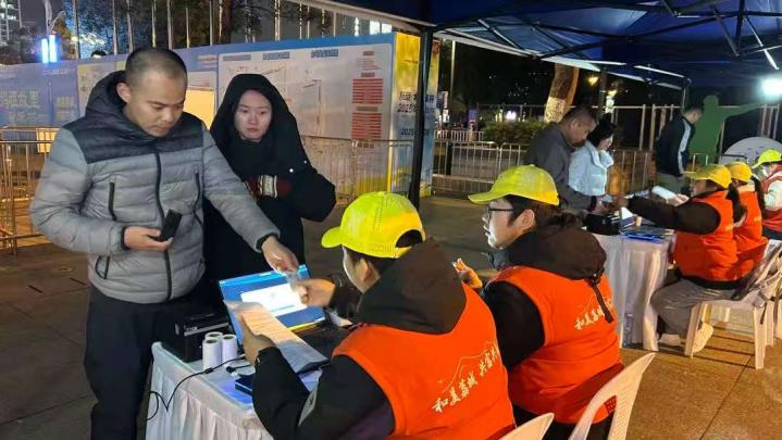 清晨四点,天未亮,1168名志愿者已在学校集结准备出发前往各个集合点。各组到达点位后,马上进入工作状态,清点物资,负责人再次核对岗位分工与应急预案。微光中,他们佩戴好工作证,仿佛战士整理戎装。