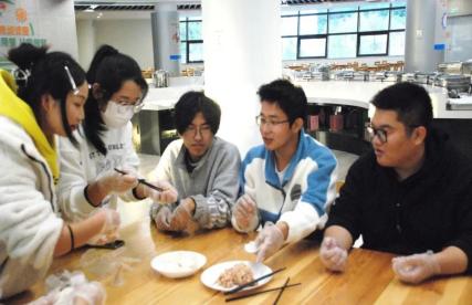 寒冬,却不减湄园内温馨融洽的气氛。或是相熟的朋友,或是初见的陌生同学,或是少数民族,在这寒冷的冬一起过一个热闹的冬至。冬至是最短的白昼,湄园学子们却在这天联络着浓厚的感情!
