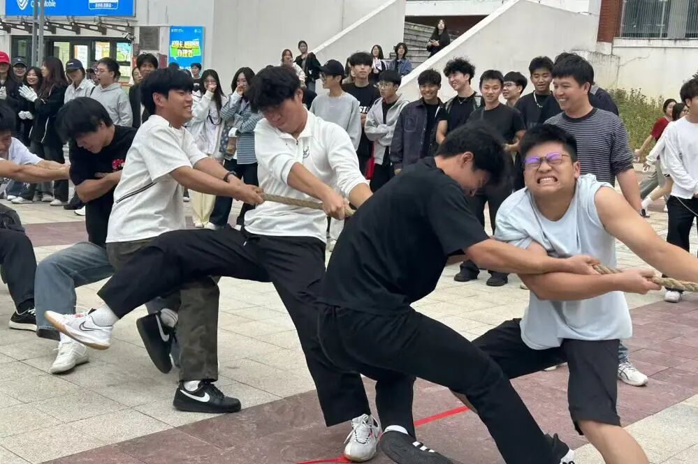15天的校园时光里,各大赛场始终热闹沸腾。从篮球、足球到气排球,从乒乓球、羽毛球到跳绳,再到拔河与定点投篮,八个项目依次推进,来自不同院系的代表队的同学们,在每个赛场里激烈比拼。